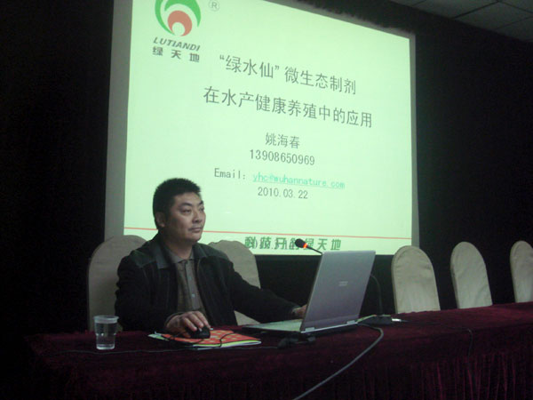 為促進(jìn)水產(chǎn)健康養(yǎng)殖的發(fā)展,2010年3月22日,湖北監(jiān)利縣水產(chǎn)局舉行了“監(jiān)利縣2010年春季水產(chǎn)健康養(yǎng)殖培訓(xùn)班” ,湖北綠天地生物科技有限公司作為推廣企業(yè)參加了該次培訓(xùn)會(huì)議。